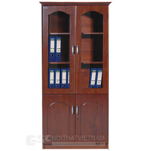Tủ tài liệu DC940H1 có 2 buồng phía dưới là 3 ngăn kéo và phía trên là 2 khoang cánh kính để tài liệu.