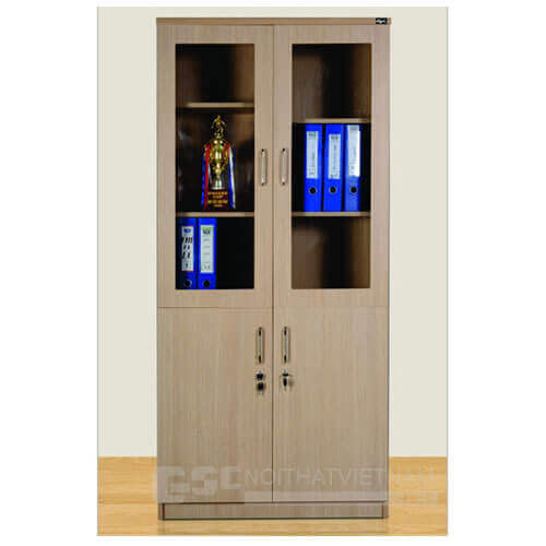 Tủ tài liệu HR1960-2B có 2 buồng, phía trên gồm 2 khoang cánh kính để tài liệu, phía dưới là 2 khoang cánh mở