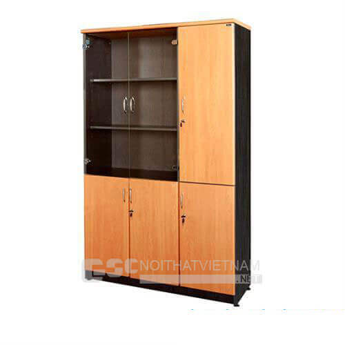 Tủ tài liệu NT1960-3B có 3 buồng, phía trên gồm 2 khoang cánh kính để tài liệu và 1 khoang treo áo, phía dưới có 3 cánh mở
