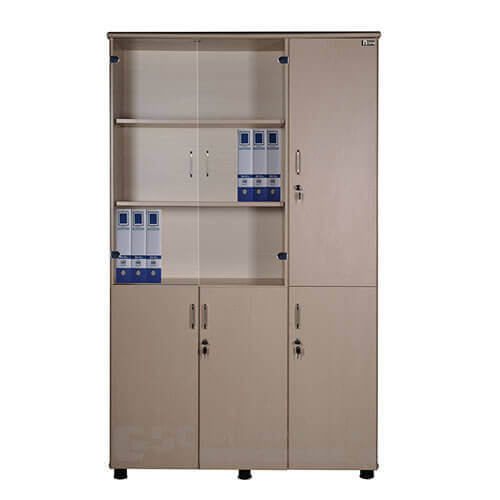 Tủ tài liệu NT1960-3BA có 3 buồng, phía trên gồm 2 khoang cánh kính để tài liệu và 1 khoang treo áo, phía dưới có 3 cánh mở